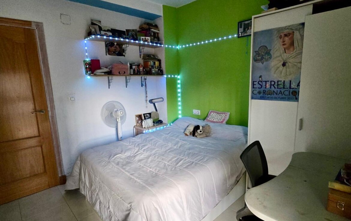 INMOBILIARIA RIVAS & GARCÍA les ofrece piso en venta en zona el Retiro . Consta de cuatro dormitorios , originalmente dos baños , con posibilidad de volver a tenerlos , actualmente los dos baños están unidos con placa de ducha y bañera , pero siguen conservando las tomas del otro para poder ponerlos y separar los baños de nuevo , cocina amueblada y equipada , amplio salón-comedor con acceso a la gran terraza . Suelos de gres . A/Acondicionado en el salón y el pasillo . Plaza de garaje en superficie asignada .Agua incluida en la comunidad . Primera planta con ascensor . Venga a verlo , no pierda la oportunidad .